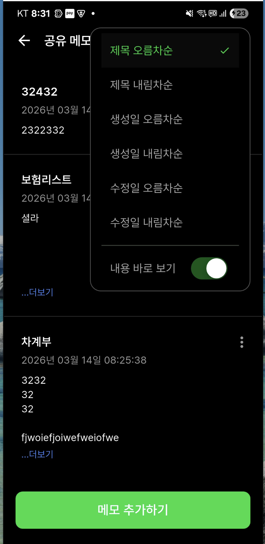메모 리스트에서 내용을 바로 볼수 있는 옵션 추가