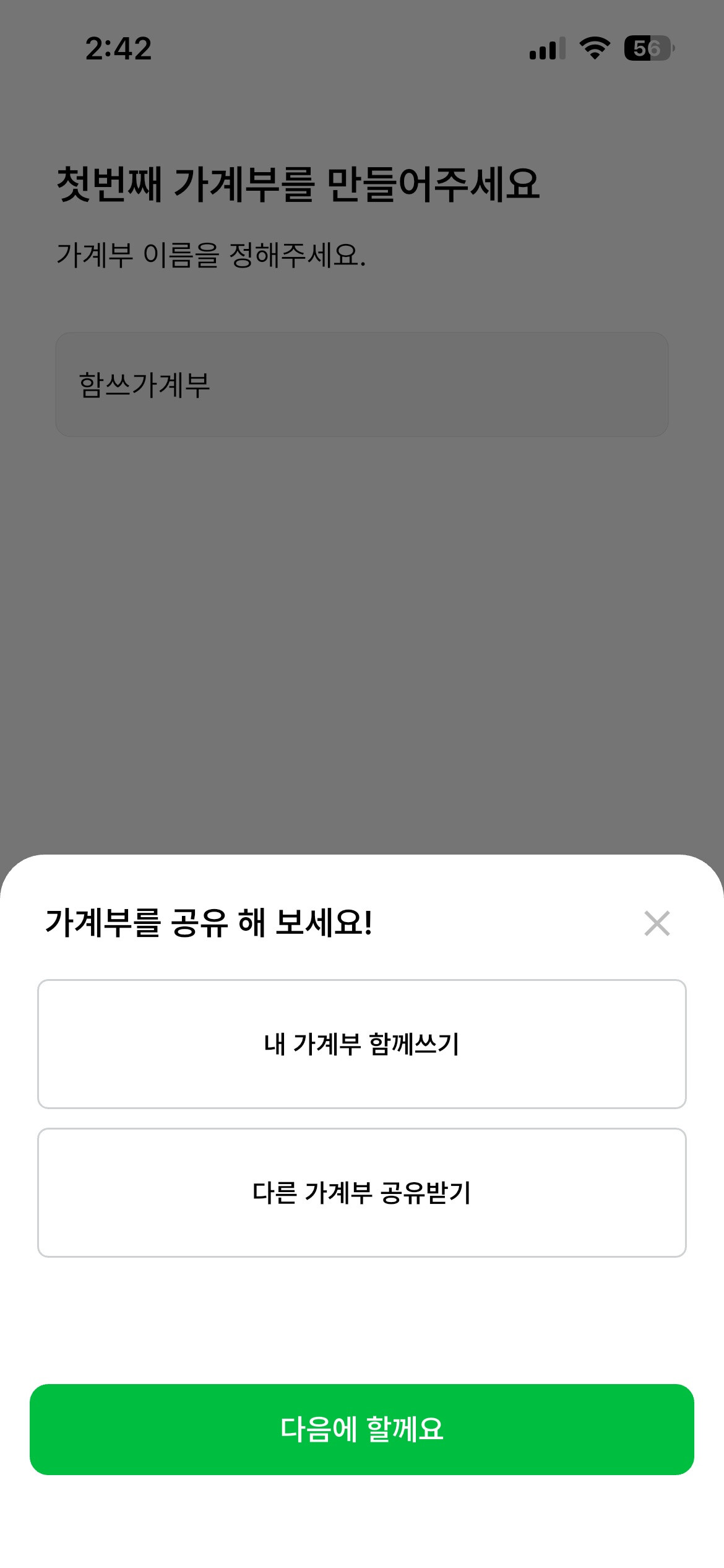 가계부를 만들고 난 뒤에 내 가계부를 누군가와 함께 쓸수도 있고 다른 누군가의 가계부를 공유 받아서 사용할 수도 있습니다.
