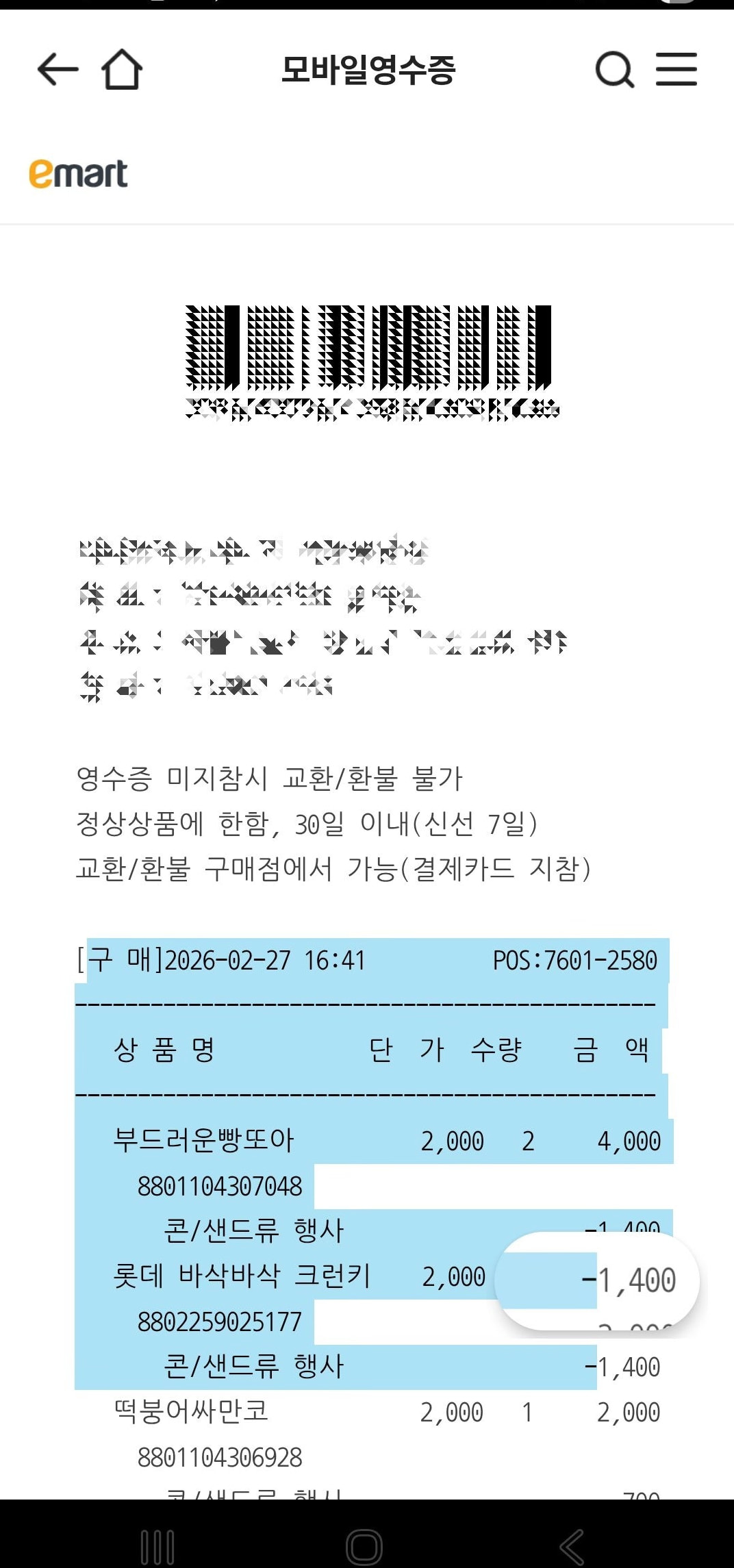 이마트 영수증 붙여넣기