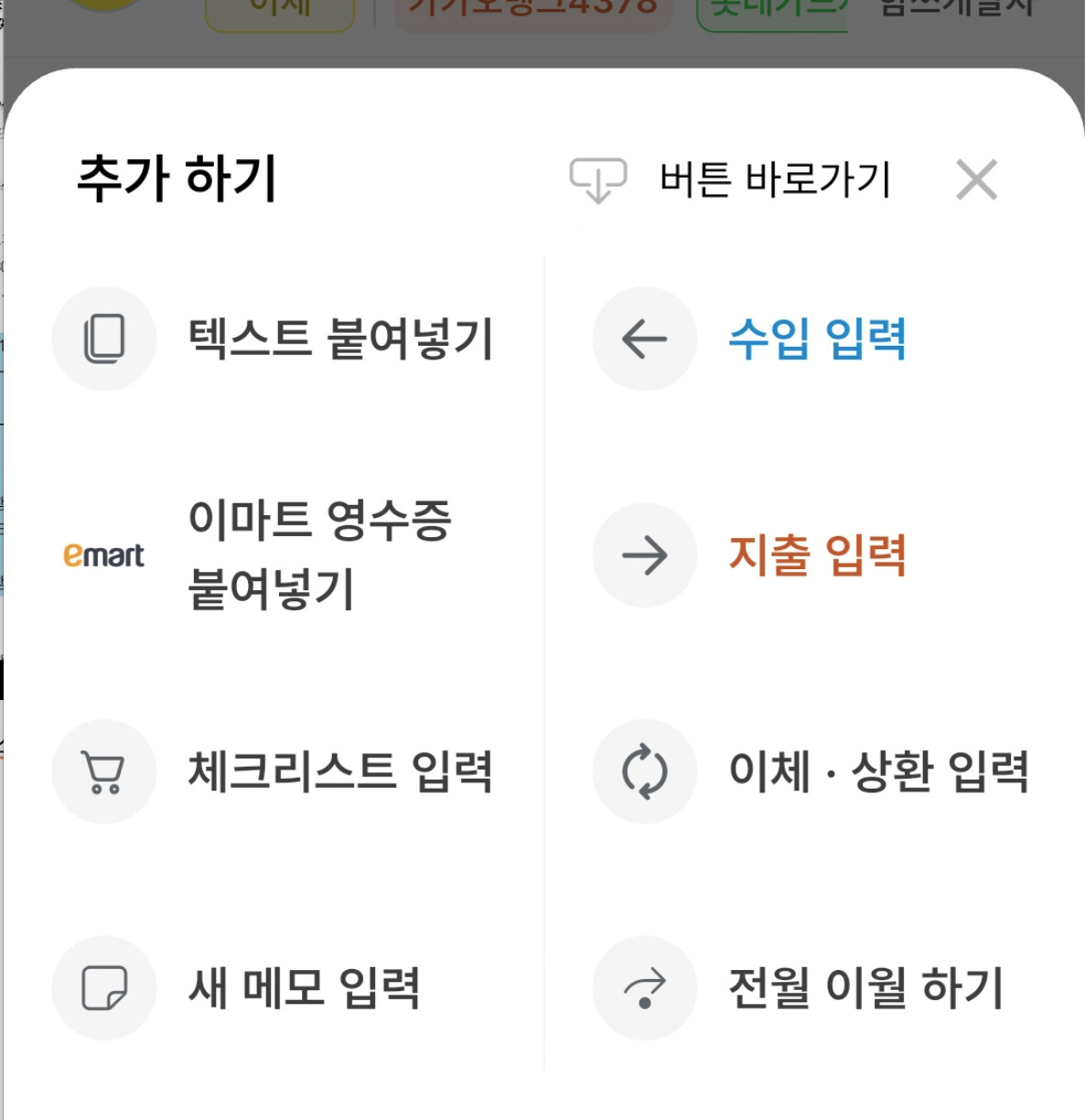 함쓰에는 이마트 모바일 영수증을 붙여넣어 자동으로 입력이 가능합니다.